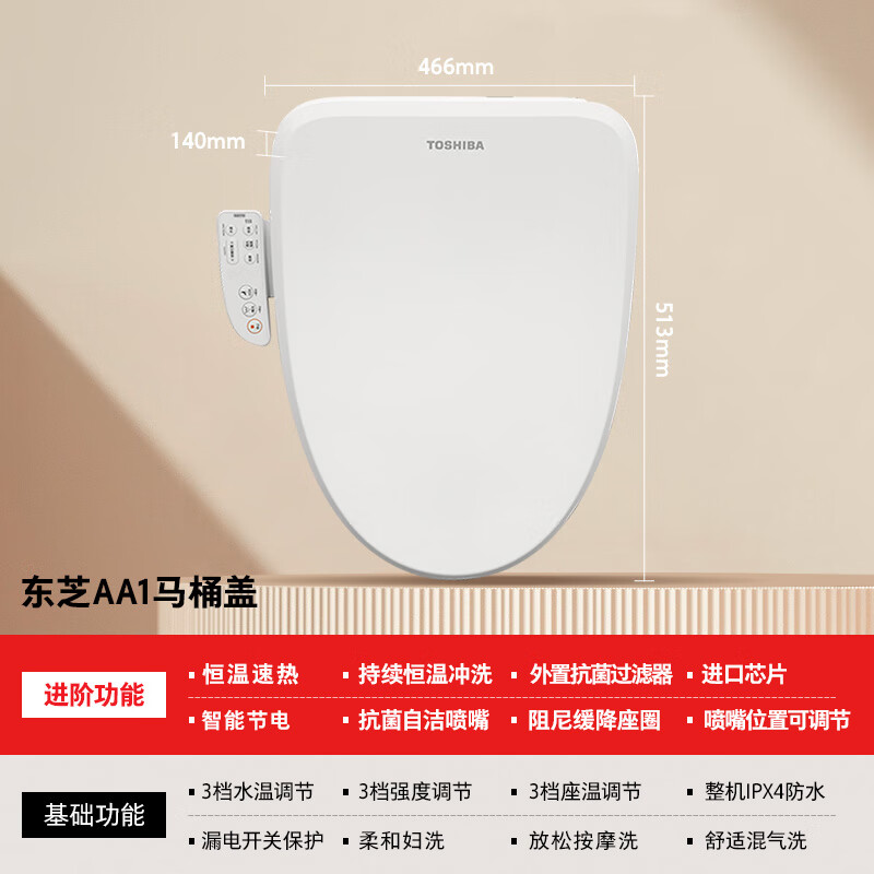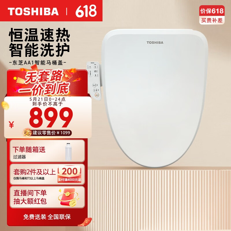 东芝(TOSHIBA)智能马桶盖全自动 电动座圈加热恒温速热冲洗马桶圈AA1价格:999.00元!