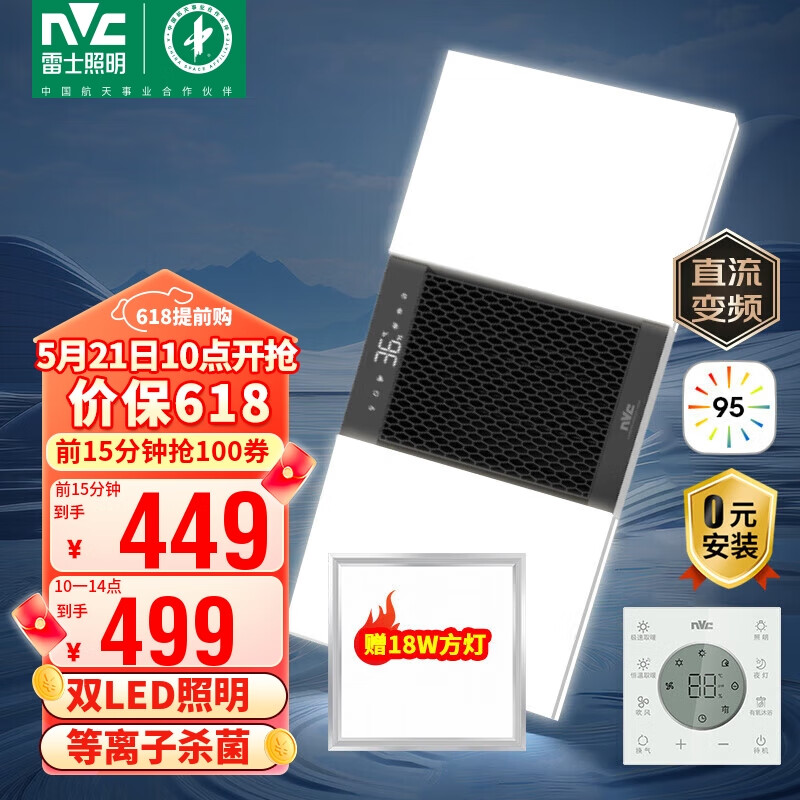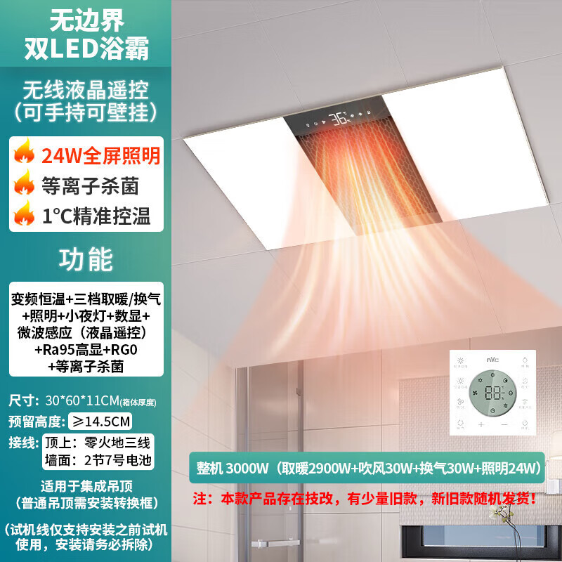 雷士(NVC)智能人感无边界双LED灯浴霸暖风照明排气一体浴室集成吊顶Y358价格:999.00元!