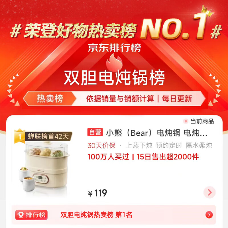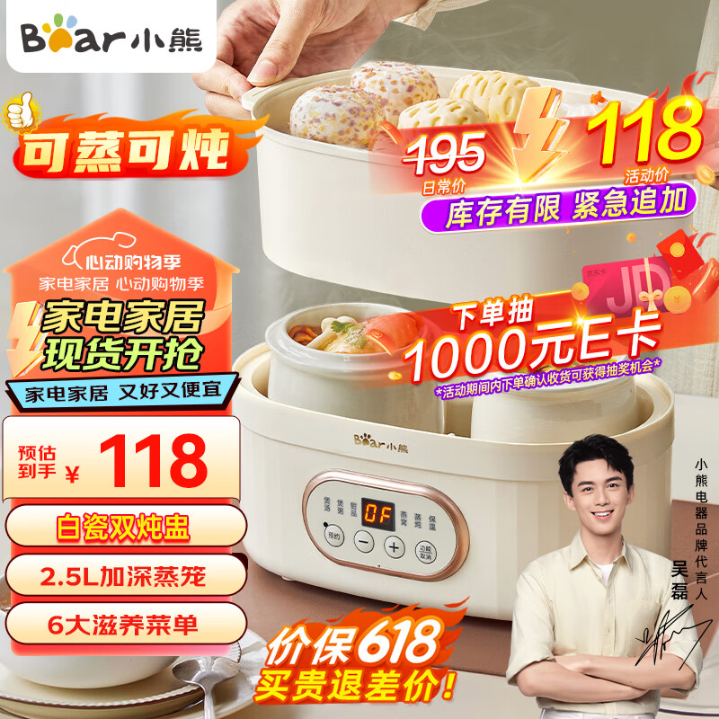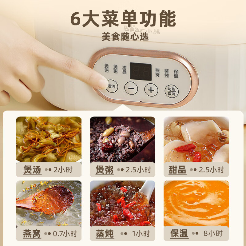 小熊(Bear)电炖锅 电炖盅 煲汤锅炖汤锅 隔水炖 婴儿煮粥锅熬粥燕窝带蒸笼可预约定时DDZ-C10V1 1L价格:118.00元!