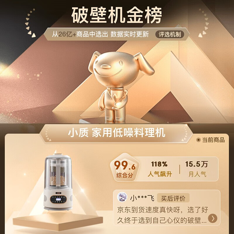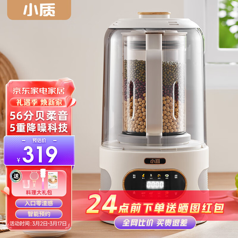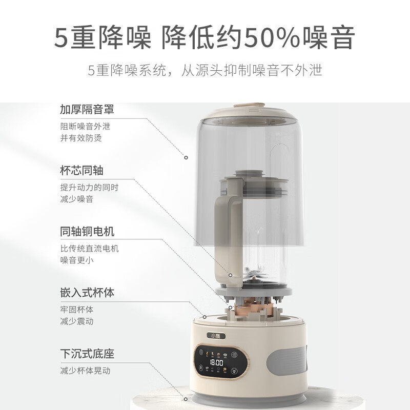 小质 低音免洗破壁机家用大容量降噪静轻柔音加热料理机全自动婴儿辅食榨汁机豆浆机搅拌机 多功能 SP01【预设菜单+预约定时】1.5L大容量 多重降噪价格:359.00元!