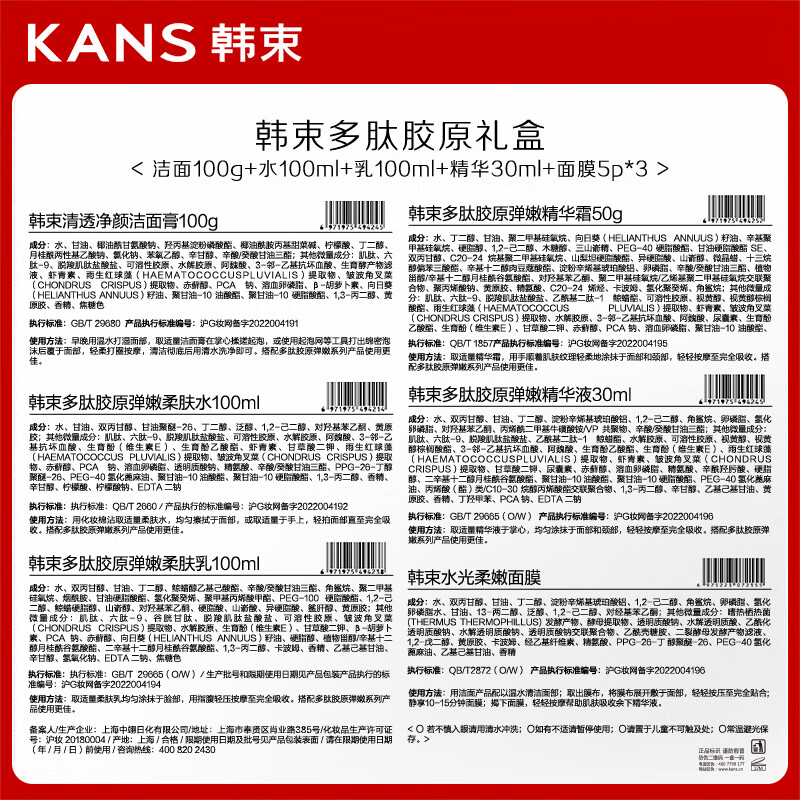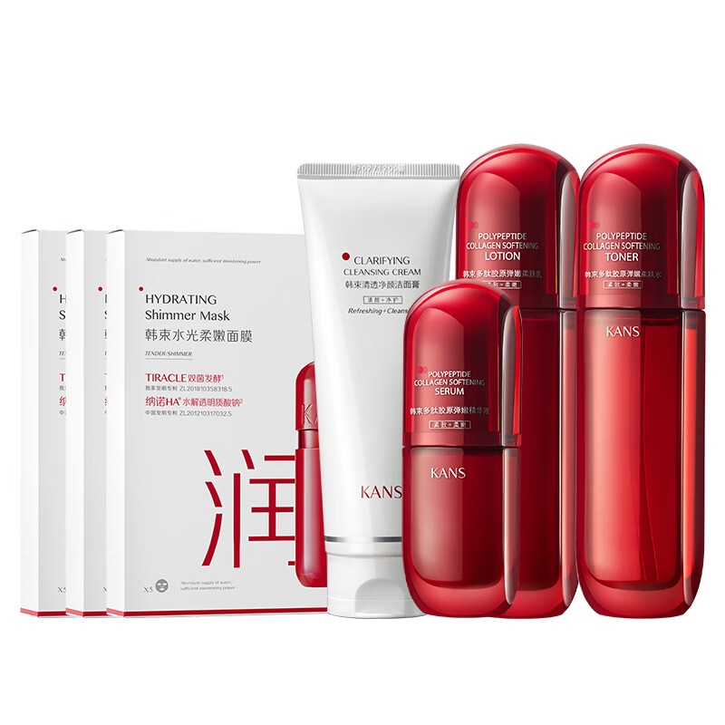 韩束红蛮腰洁水乳精华面膜7件套 抗氧抗糖紧致化妆品护肤品套装价格:379.00元!