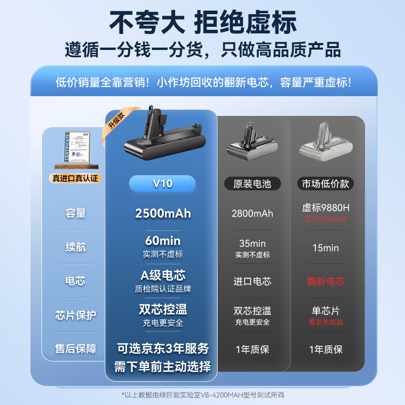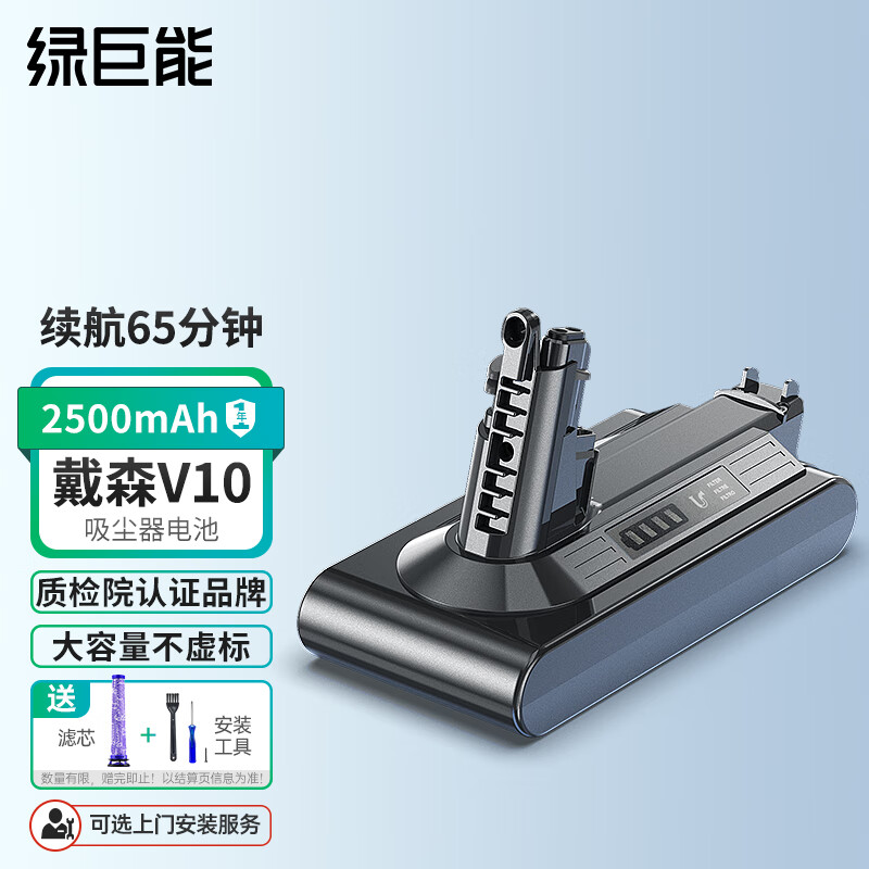 绿巨能(llano)适用戴森Dyson电池V10吸尘器可充电锂电池SV12/Animal/Fluffy/Motorhead/Absolute等2500mAh价格:309.00元!