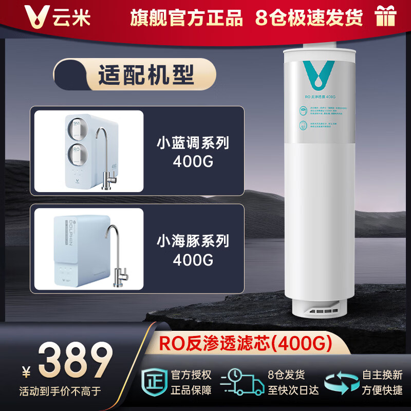 云米(VIOMI)净水器滤芯适配小蓝调 小海豚 小白龙400G、600G 1号5in1适用于Cross 600G/Cross 800G滤芯 2号RO膜400G(仅支持400G机型)价格:389.00元!