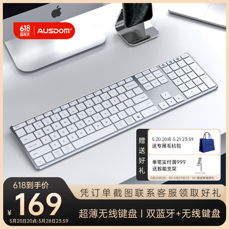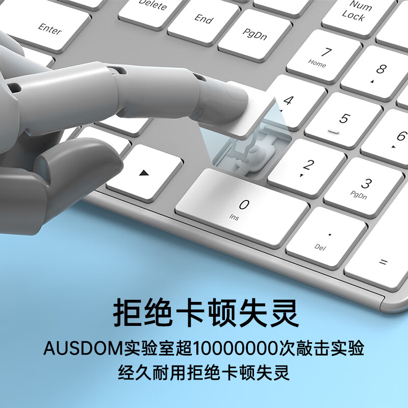 阿斯盾无线蓝牙键盘商务办公家用台式电脑笔记本平板ipad手机键盘静音超薄金属剪刀脚充电式110全键白色价格:199.00元!
