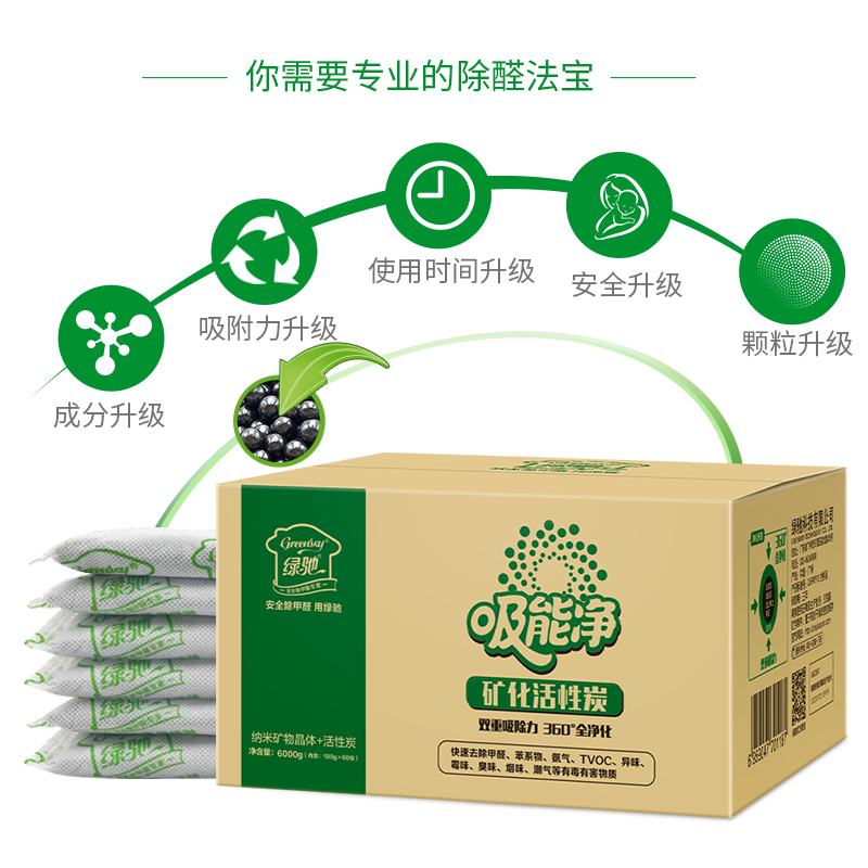 绿驰 活性炭6000g 升级矿化活性炭包 室内新房吸去除甲醛清除剂除臭竹炭包 新车家用除异味吸甲醛防潮碳包价格:128.00元!