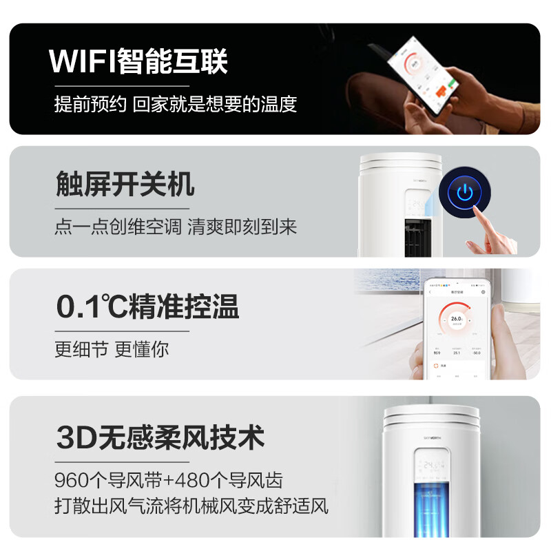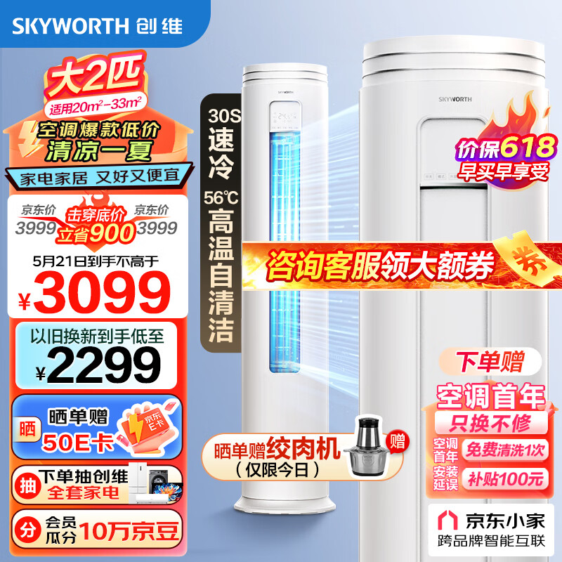 创维(SKYWORTH)大2匹微风感 升级新能效 空调柜机 变频冷暖 空调立式 KFR-51LW/V3AA1A-N3CA以旧换新价格:3099.00元!