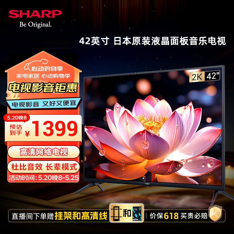 SHARP夏普2T-C42A7DA 42英寸 日本原装液晶面板 1+8G 杜比音效 智能UI系统 4K解码 平板电视价格:1399.00元!