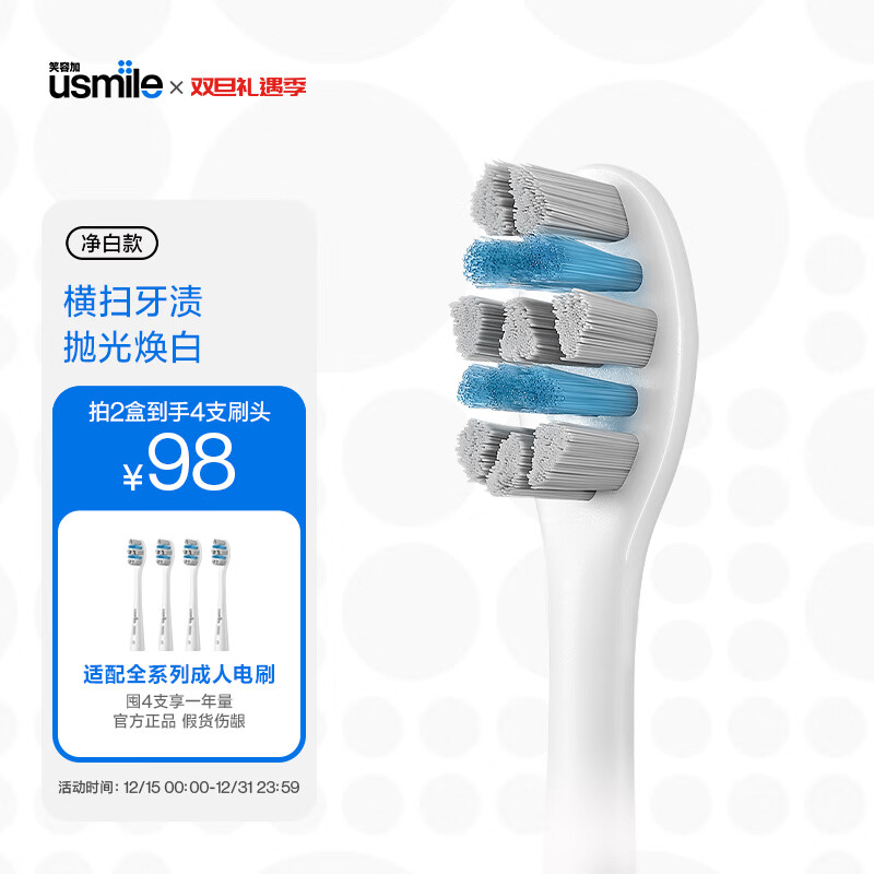 usmile笑容加 电动牙刷头 成人软毛褪色净白款2支装 蓝灰色价格:57.00元!