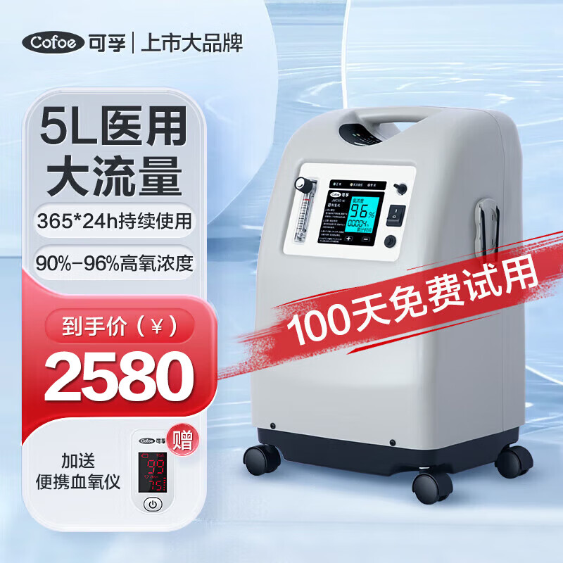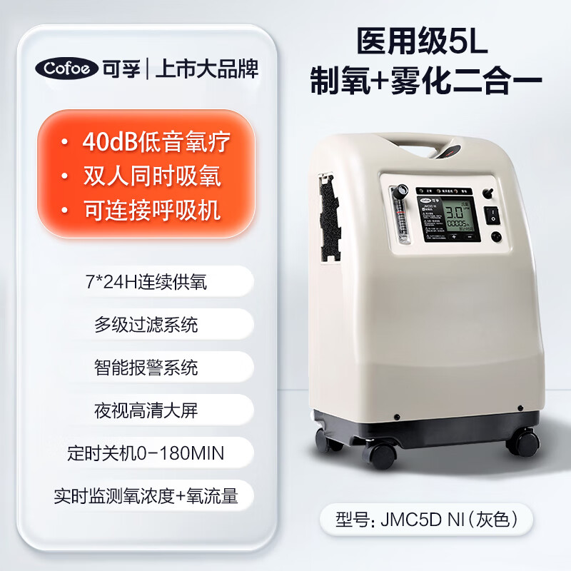 可孚 制氧机家用吸氧机5升医用氧气便携式高原雾化一体机 JMC5D Ni(灰色)价格:4580.00元!