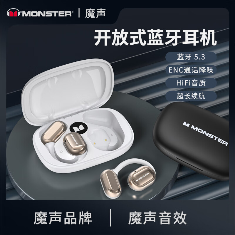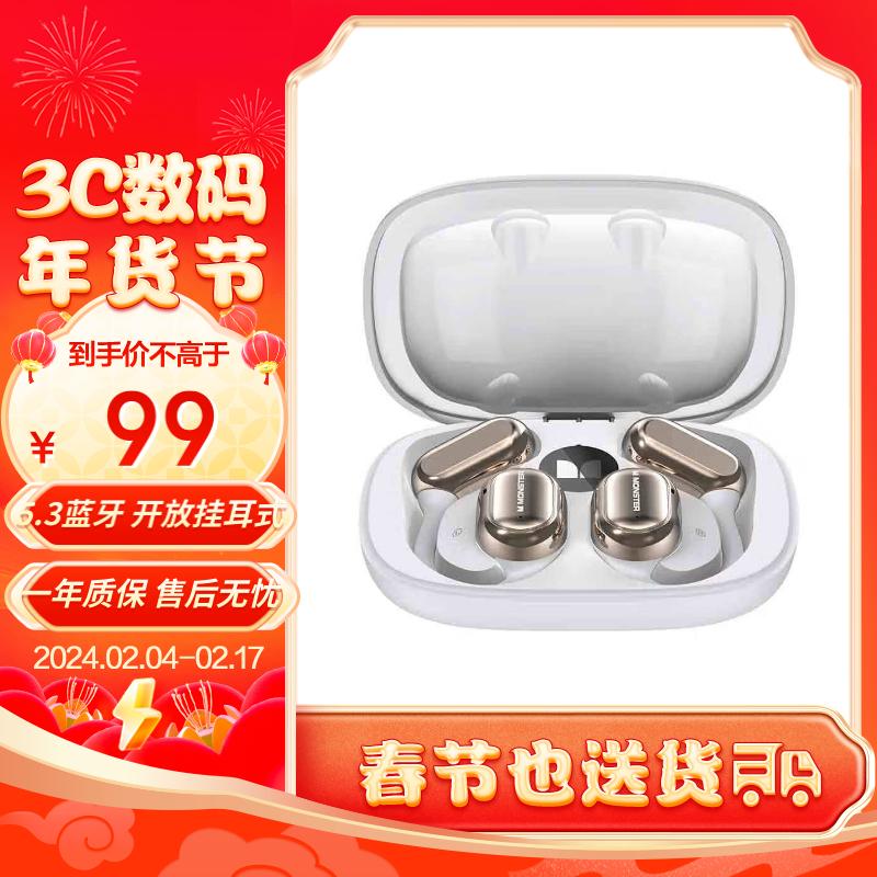 魔声(MONSTER)AC100真无线蓝牙耳机不入耳挂耳式骨传导概念开放运动跑步防汗通话降噪音乐游戏长续航 升级版白色价格:95.00元!