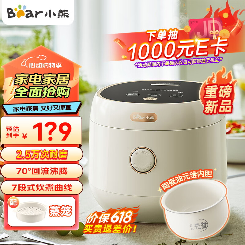 小熊(Bear)电饭煲 电饭锅 家用多功能3升智能防溢预约元釜柴火饭2-3人迷你米饭锅4-5人 DFB-C30L3 3L价格:169.00元!