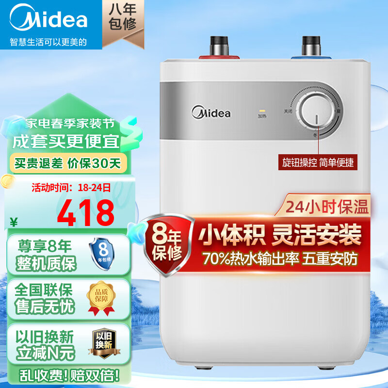 美的(Midea)迷你上出水小厨宝电热水器速热 蓝钻内胆防护 小尺寸热水宝 厨房热水器 【5升】一级能效 2000W速热价格:418.00元!