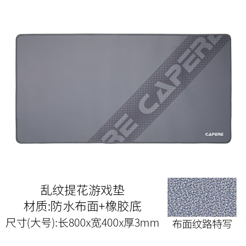 CAPERE(铠雷) 乱纹提花游戏鼠标垫顺滑精准电脑竞技游戏垫 乱纹提花游戏垫【大号灰色】800x400x3mm价格:45.90元!