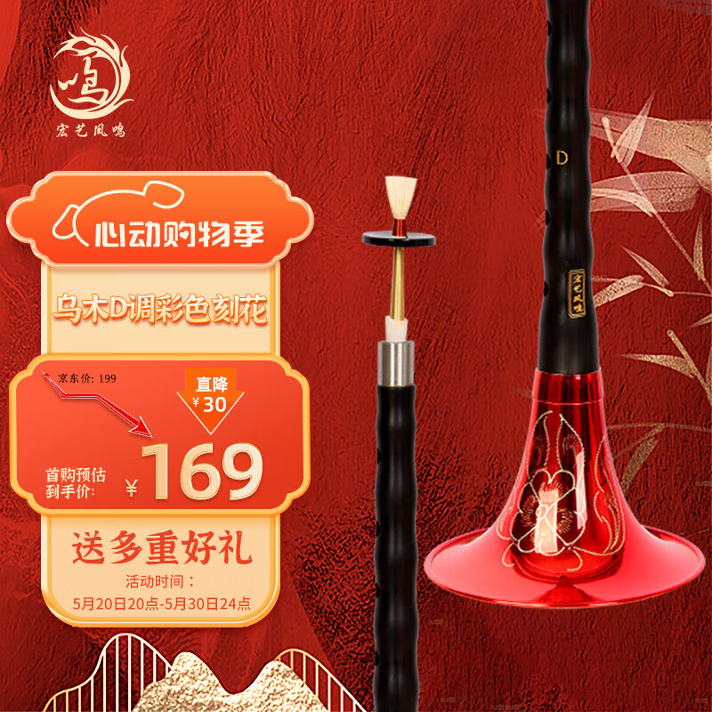 宏艺凤鸣(HongYiFengMing)乌木D调彩色刻花初学者成人入门通用民族乐器演奏唢呐价格:199.00元!