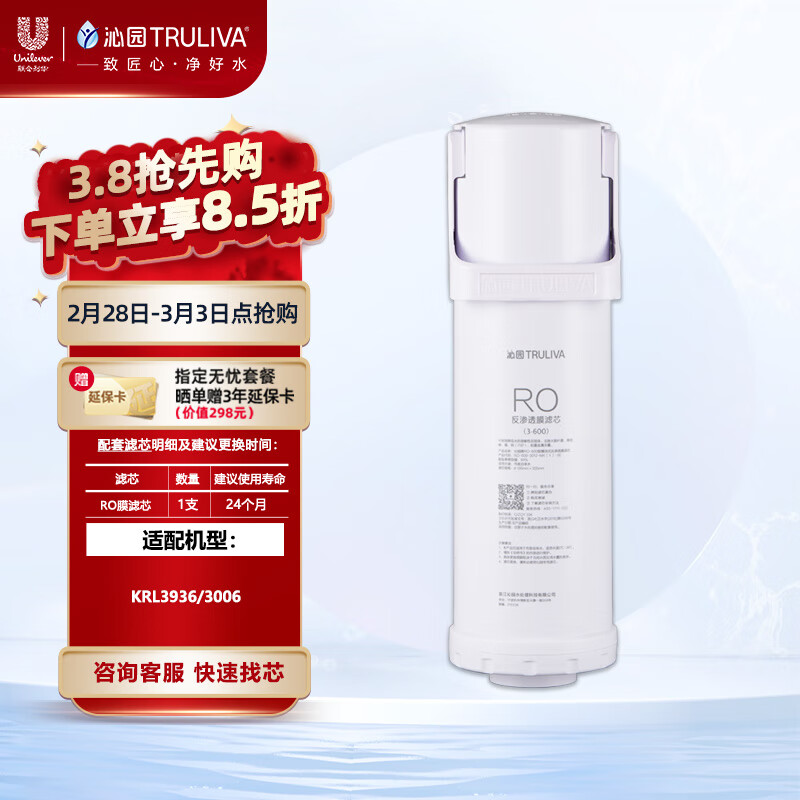 沁园(TRULIVA)小净灵小新600G沁园第2级反渗透RO膜滤芯(KRL3006/3936)RO-600-3012-MK(Ⅱ)-3E价格:1000.00元!