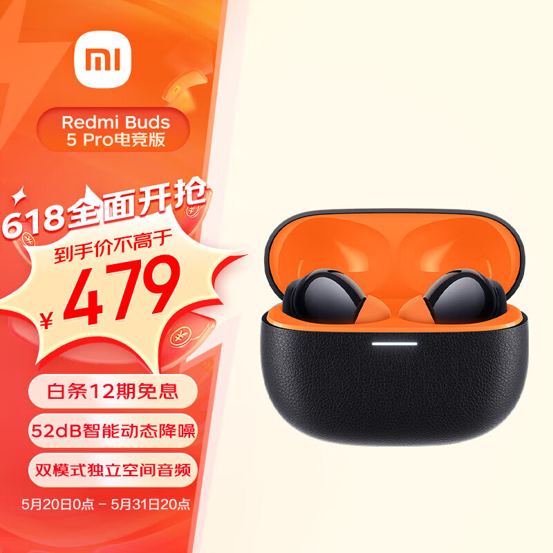 小米(MI)Redmi Buds 5 Pro 真无线降噪耳机 入耳式舒适佩戴 小米华为苹果手机通用(电竞版)价格:479.00元!