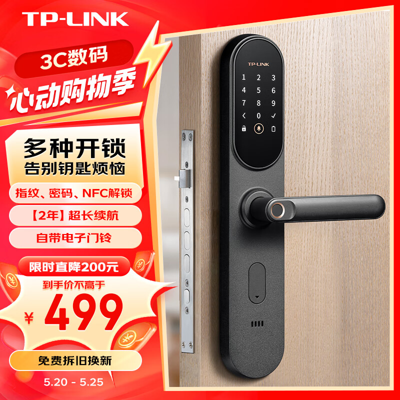 TP-link 智能门锁 指纹锁密码锁 C级锁芯 家用电子锁防盗门锁NFC解锁入户门 SL21 免费上门安装价格:499.00元!