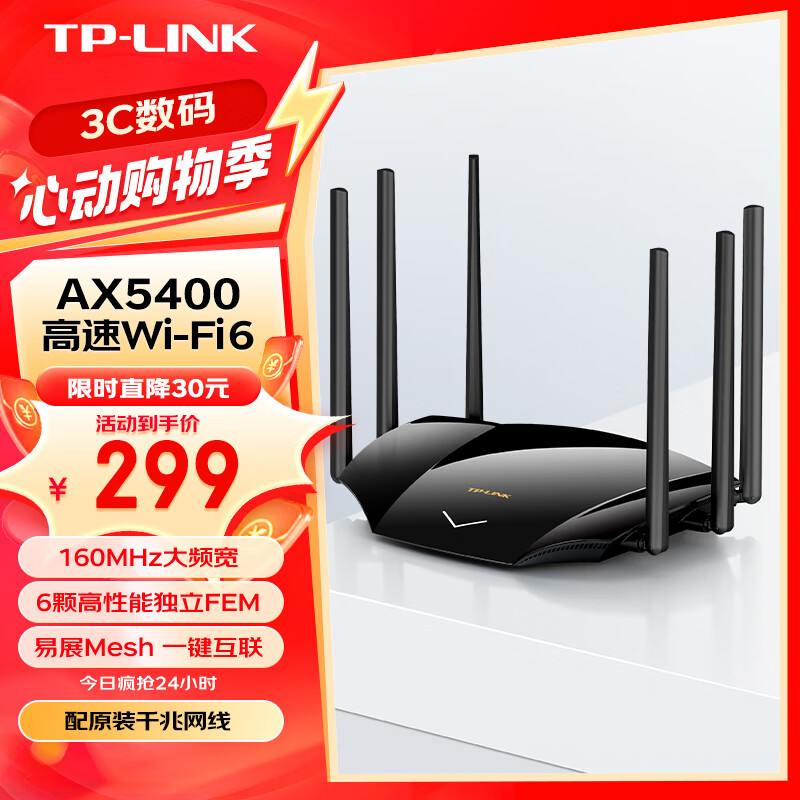 TP-link AX5400千兆无线路由器 WiFi6 5G双频高速网络 Mesh路由 游戏路由 智能家用穿墙 XDR5430易展版价格:329.00元!