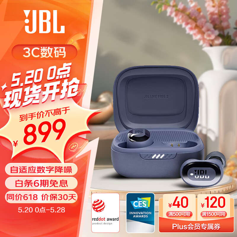 JBL LIVE FREE2真无线入耳式蓝牙耳机主动降噪高音质音乐游戏运动耳机 蓝色价格:899.00元!