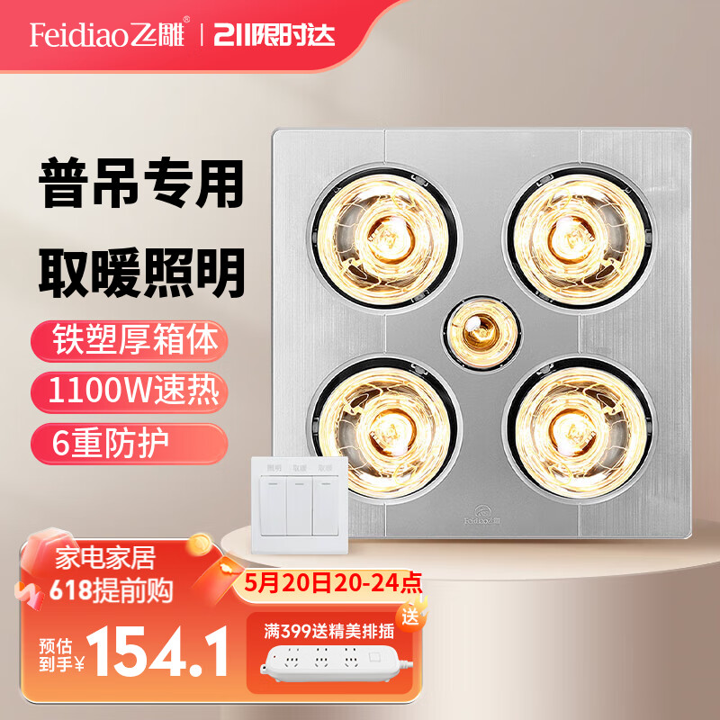 飞雕(FEIDIAO)灯暖浴霸取暖照明浴室取暖器灯暖一体卫生间适用普通吊顶传统吊顶价格:154.11元!