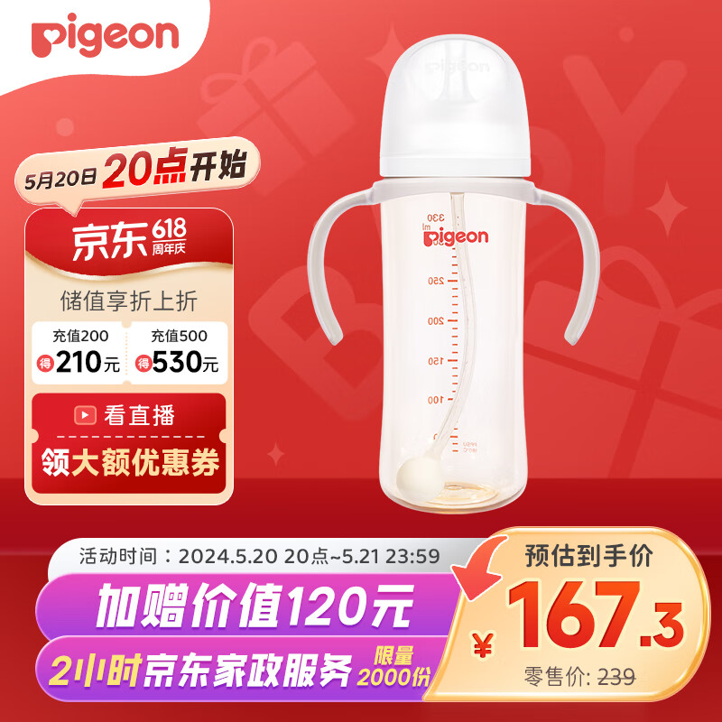 贝亲(Pigeon)自然离乳 PPSU重力球吸管奶瓶 双把手 330mL 12月以上 AA253价格:185.50元!