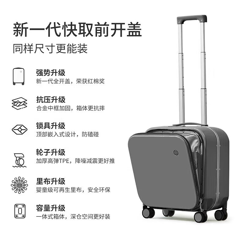 米熙前开盖拉杆箱子行李箱男登机箱铝框箱密码箱旅行箱18英寸矿岩灰60价格:609.00元!