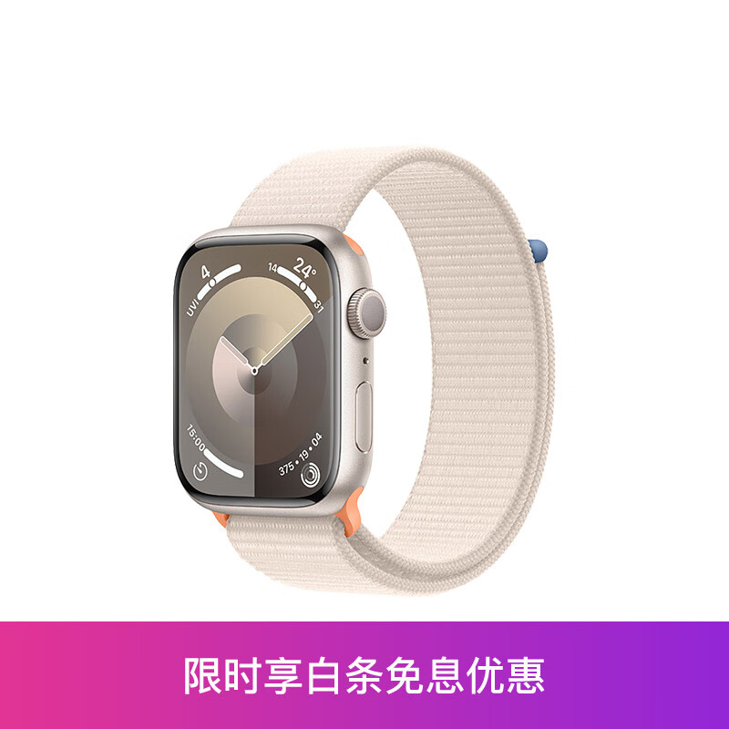 Apple/苹果 Watch Series 9 智能手表GPS款45毫米星光色铝金属表壳 星光色回环式运动表带 S9 MR983CH/A【免息版】价格:3199.00元!