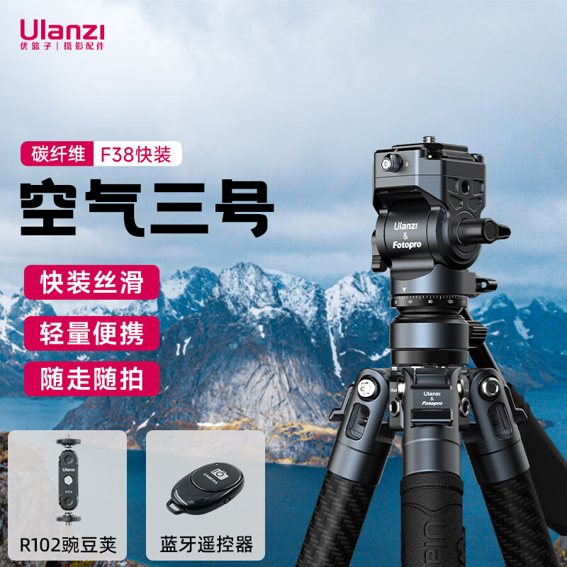 ulanzi优篮子空气三号F38碳纤维三脚架魔术手套装液压全景云台便携户外快装快拆数码相机摄影三角架价格:1027.00元!