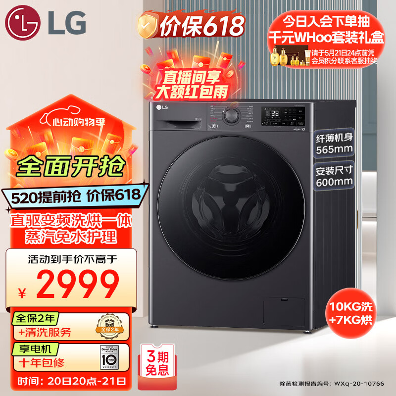 LG 星云黑 超薄洗烘一体机 10KG大容量滚筒自动洗衣机家用家电 蒸汽除菌 AIDD直驱变频 黑FCY10R4M价格:3299.00元!