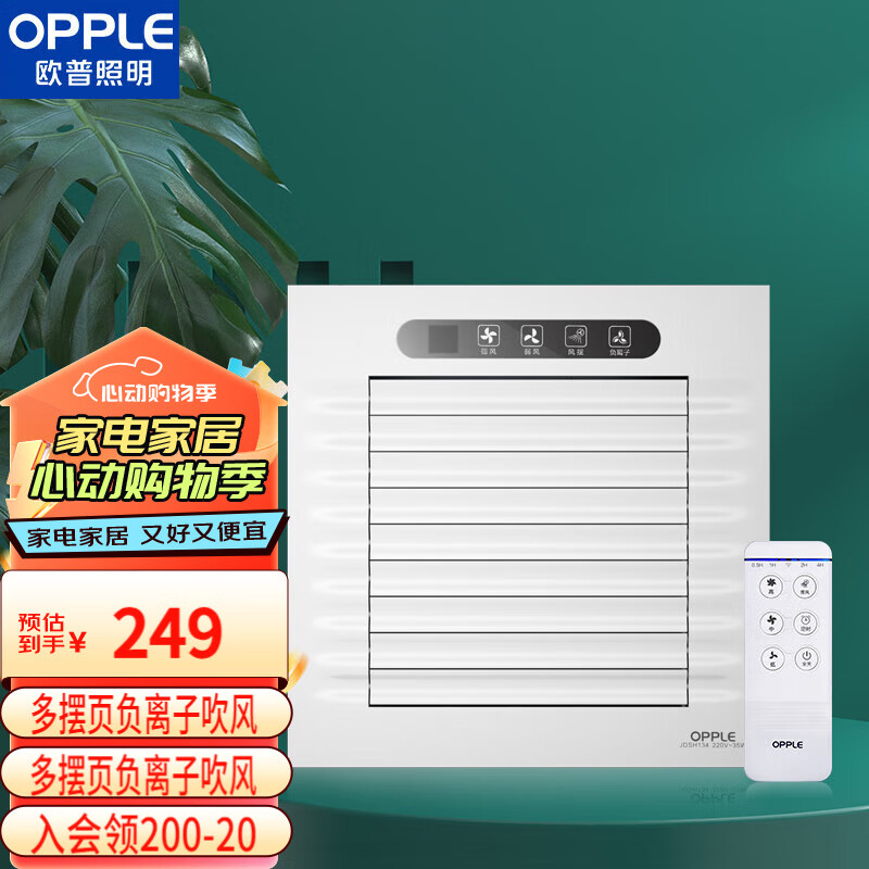 OPPLE欧普凉霸厨房卫生间集成吊顶凉霸无线遥控两档调速降温 JDSH134价格:249.00元!