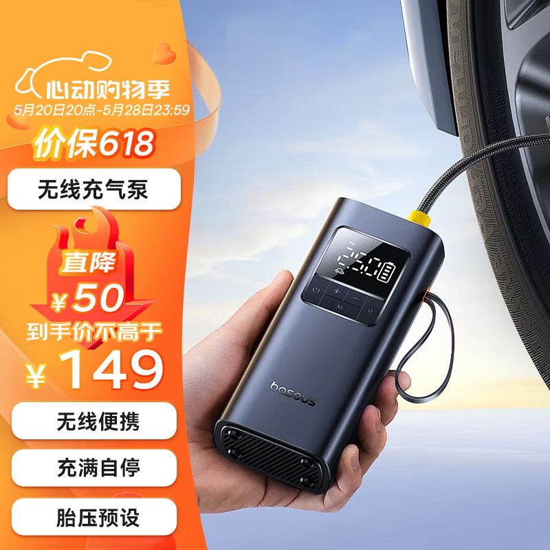 倍思(baseus)车载充气泵汽车轮胎打气泵自行车打气筒电动便携无线车胎充气宝价格:149.00元!