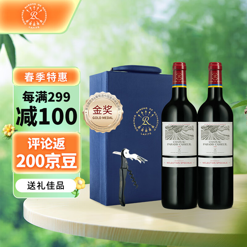 拉菲(LAFITE)凯萨天堂古堡珍酿干红葡萄酒 750ml*2 耀蓝礼盒装价格:637.80元!