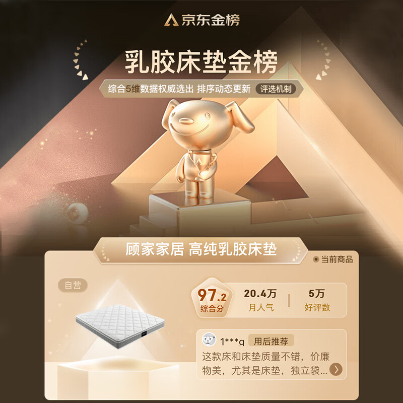 顾家家居床垫高纯度乳胶独袋弹簧床垫席梦思床垫1.8X2米M0001J梦想垫价格:1099.00元!