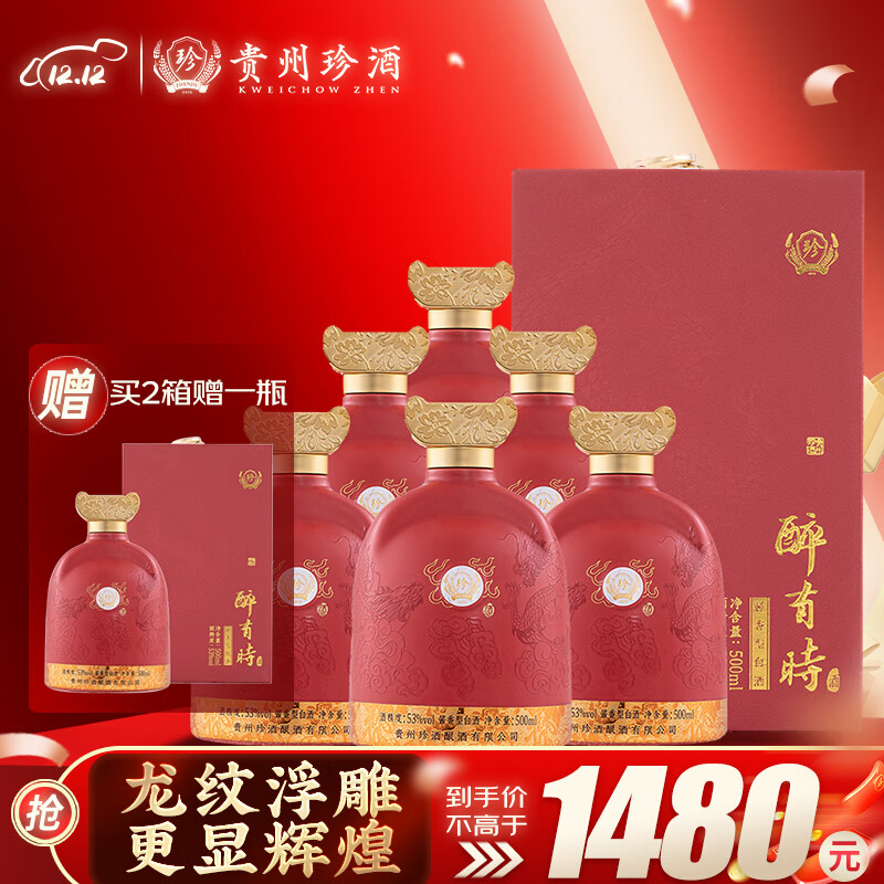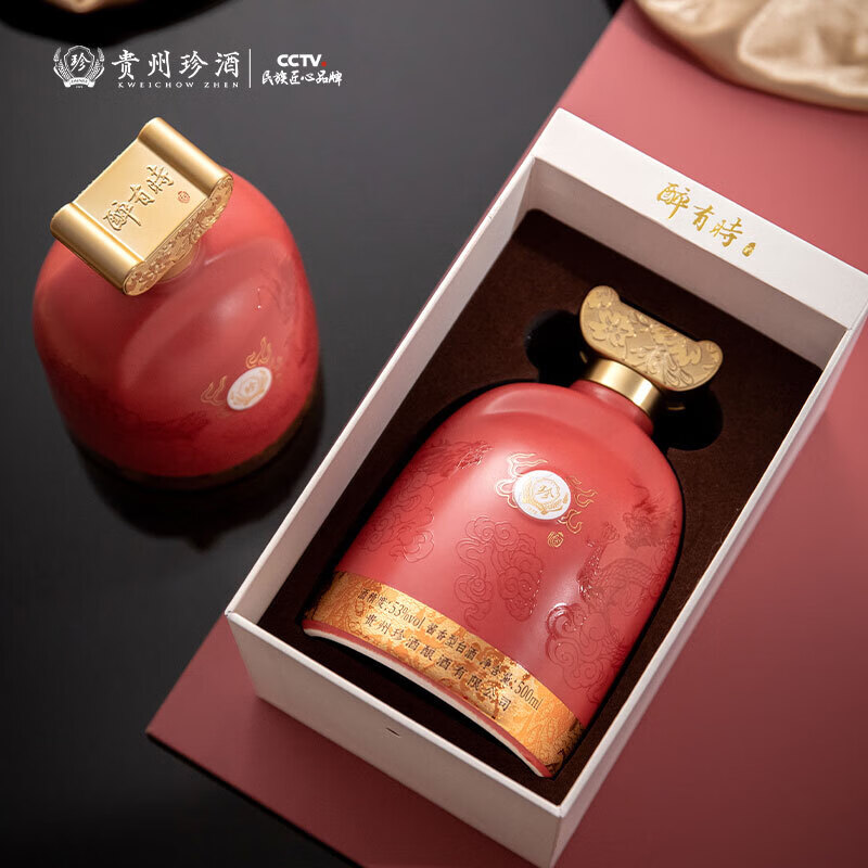 珍酒贵州 醉有时 53度酱香型高度白酒 纯粮酿造大曲坤沙 53度 500mL 6瓶 喜宴版(整箱装)价格:1759.00元!