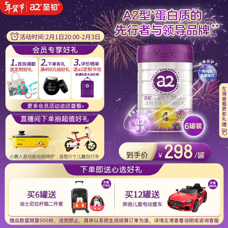 a2至初 4段奶粉 儿童配方调制乳粉(3-6岁)850g*6罐 新升级价格:2031.82元!