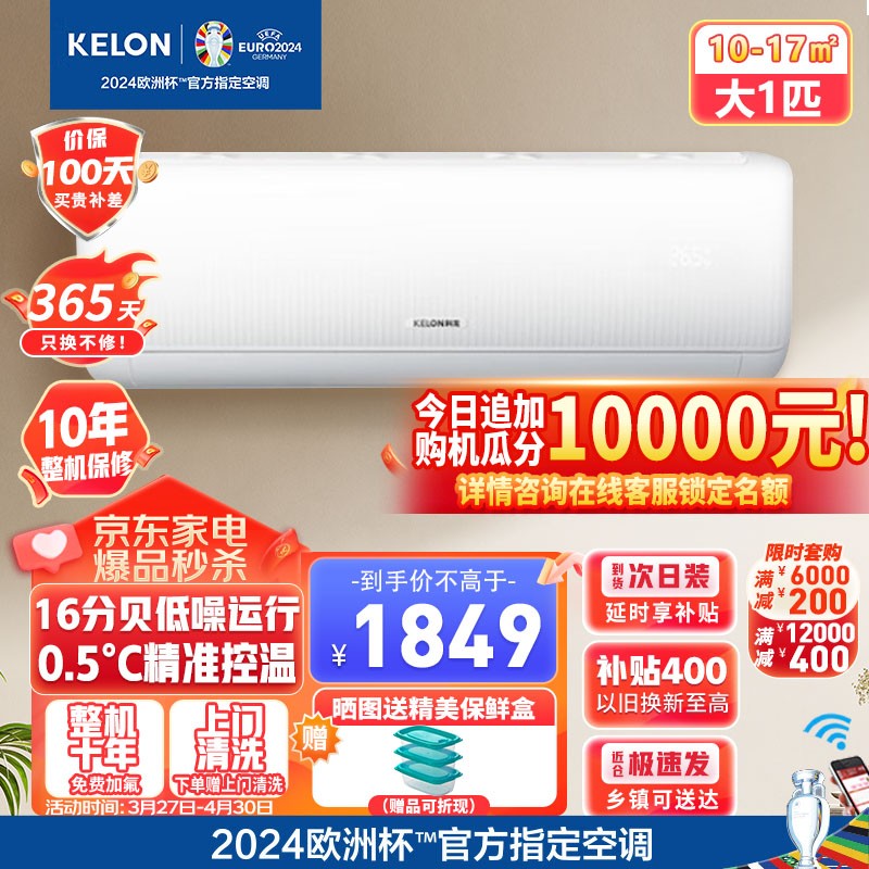 科龙(KELON)大1匹新一级能效大风量16分贝低噪轻音变频智能WIFI急速冷暖壁挂式挂机卧室空调KFR-26GW/QS1-X1价格:1799.00元!