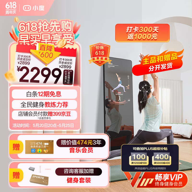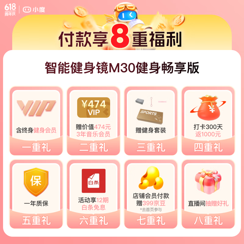 小度添添智能健身镜 M30健身畅享版 魔镜AI运动镜 终身会员 礼物送礼价格:3399.00元!