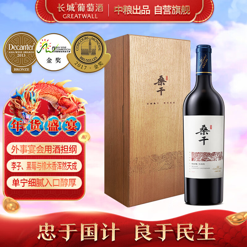长城 桑干酒庄 梅鹿辄赤霞珠干红葡萄酒 木盒 750ml 单瓶装 年货送礼价格:825.00元!