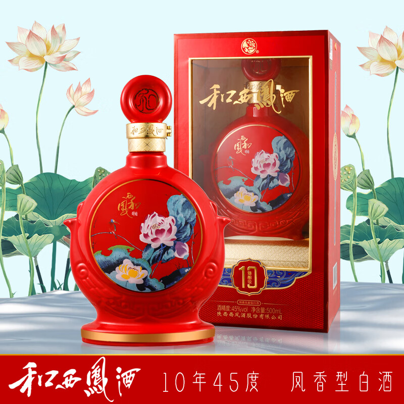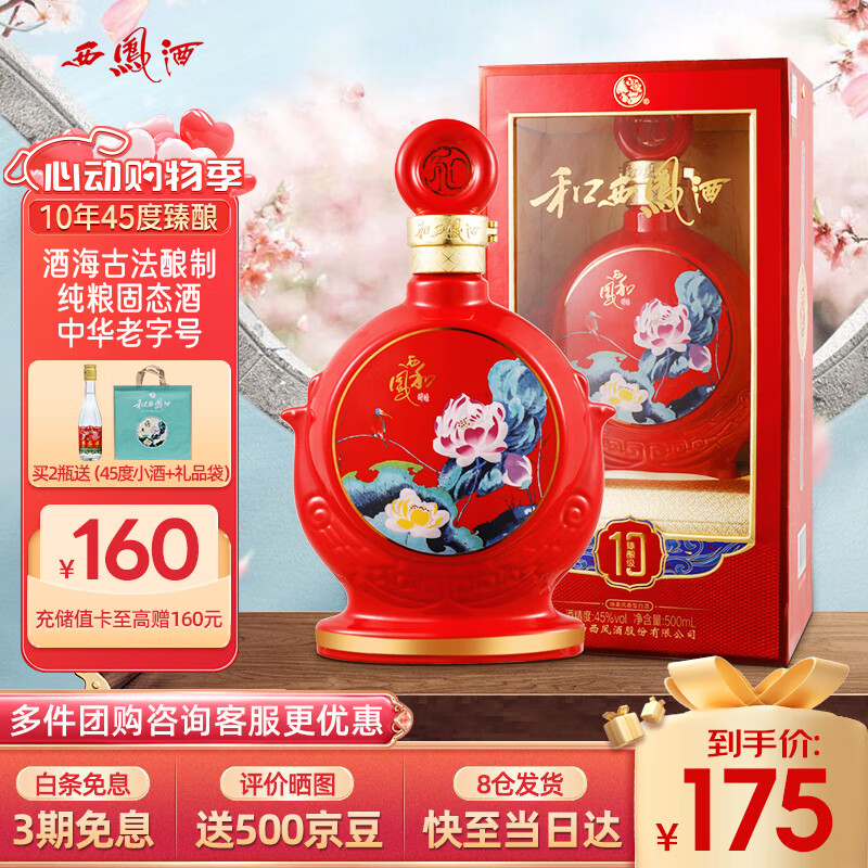 西凤酒 10年45度和系列陕西纯粮凤香型白酒节日婚宴请送礼盒装500mL*1价格:175.00元!