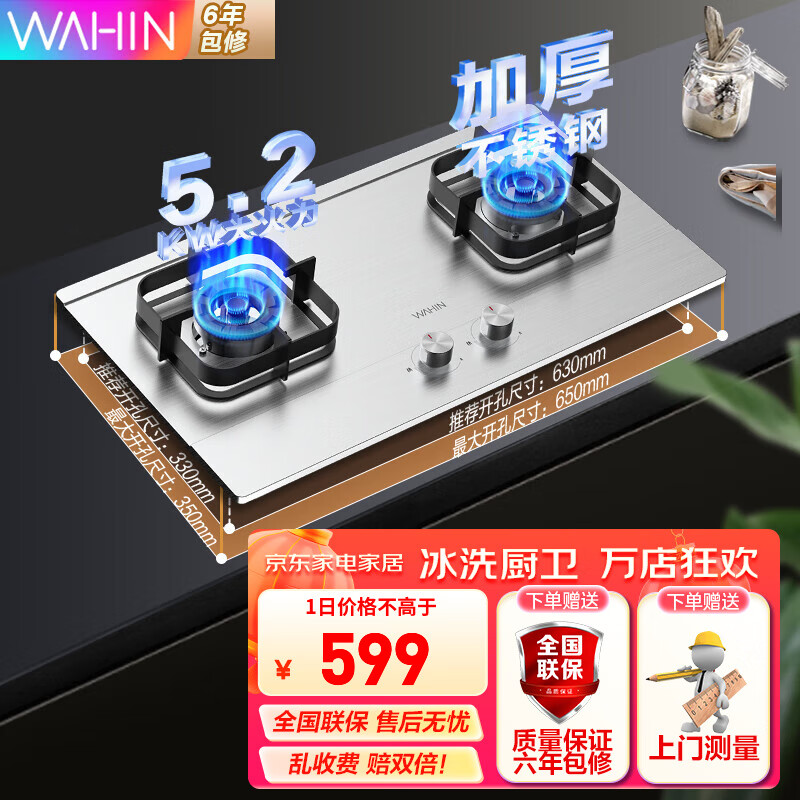 美的(Midea)出品双灶不锈钢面板 精铜火盖 天然气液化气煤气灶 家用台嵌两用灶具火力猛火灶 液化气 4.6KW-美的华凌HQ8B系列价格:599.00元!