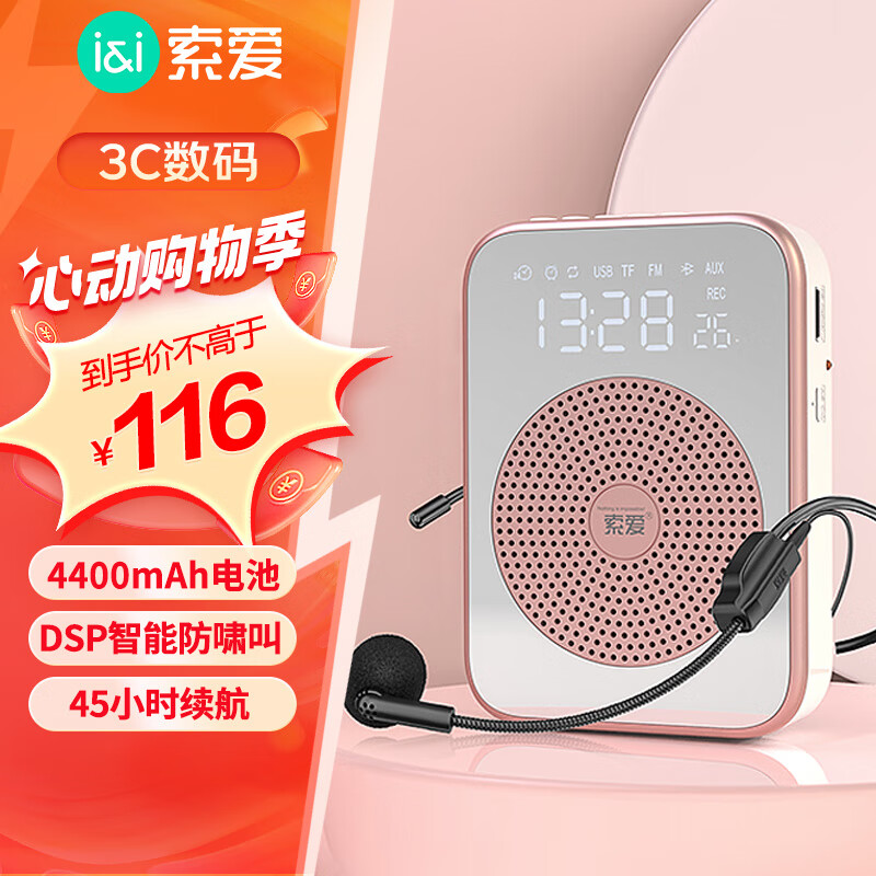 索爱(soaiy)S350防啸叫小蜜蜂扩音器教师专用喇叭麦克风上课教学导游腰挂户外长续航插卡收音机蓝牙播放器 金价格:129.00元!