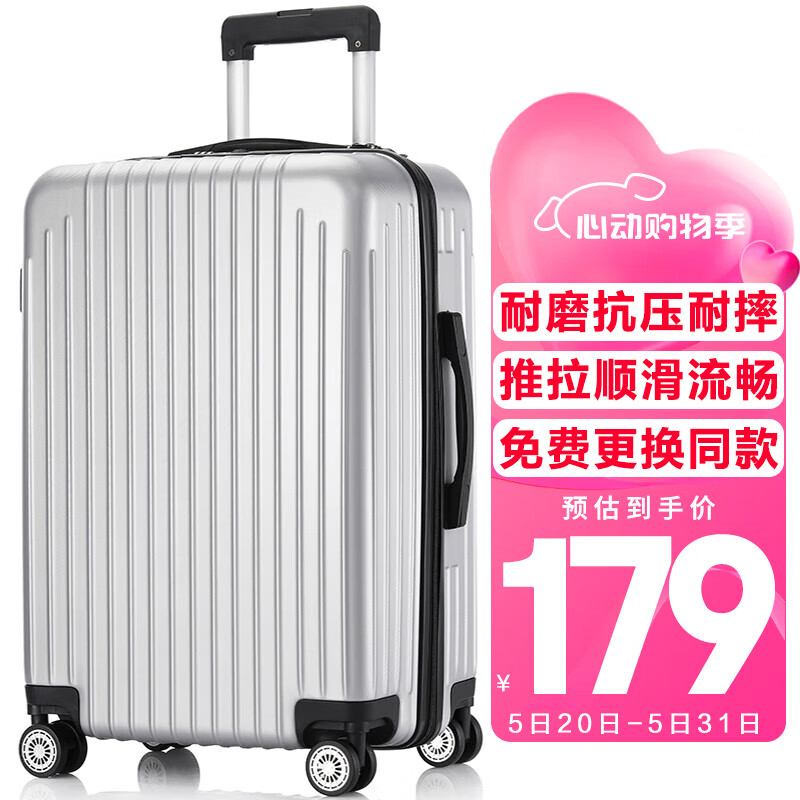 梵地亚行李箱男26英寸万向轮拉杆箱女大容量旅行箱商务密码箱皮箱子银价格:179.00元!