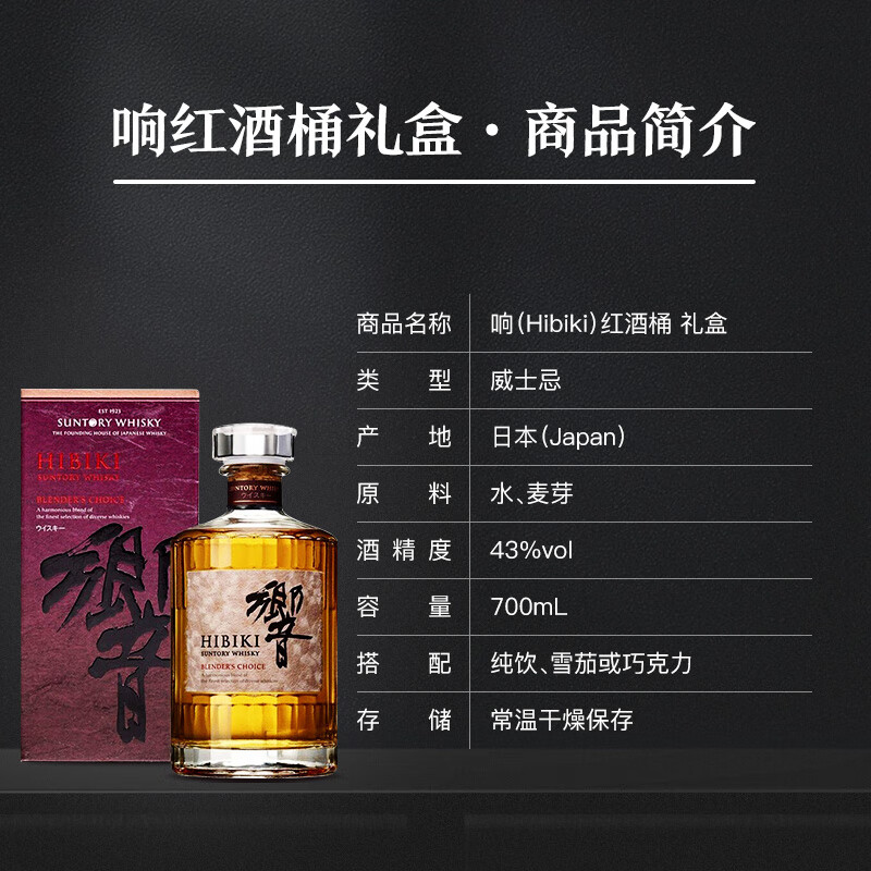 响(Hibiki)红酒桶 调和型威士忌 700ml 三得利威士忌(礼盒款)(年货送礼)价格:1189.00元!