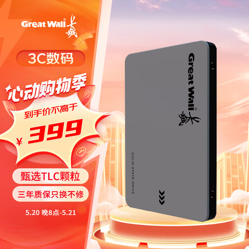 长城(Great Wall) 1TB SSD固态硬盘 SATA3.0接口 读速550MB/S台式机/笔记本通用 GW560系列价格:399.00元!