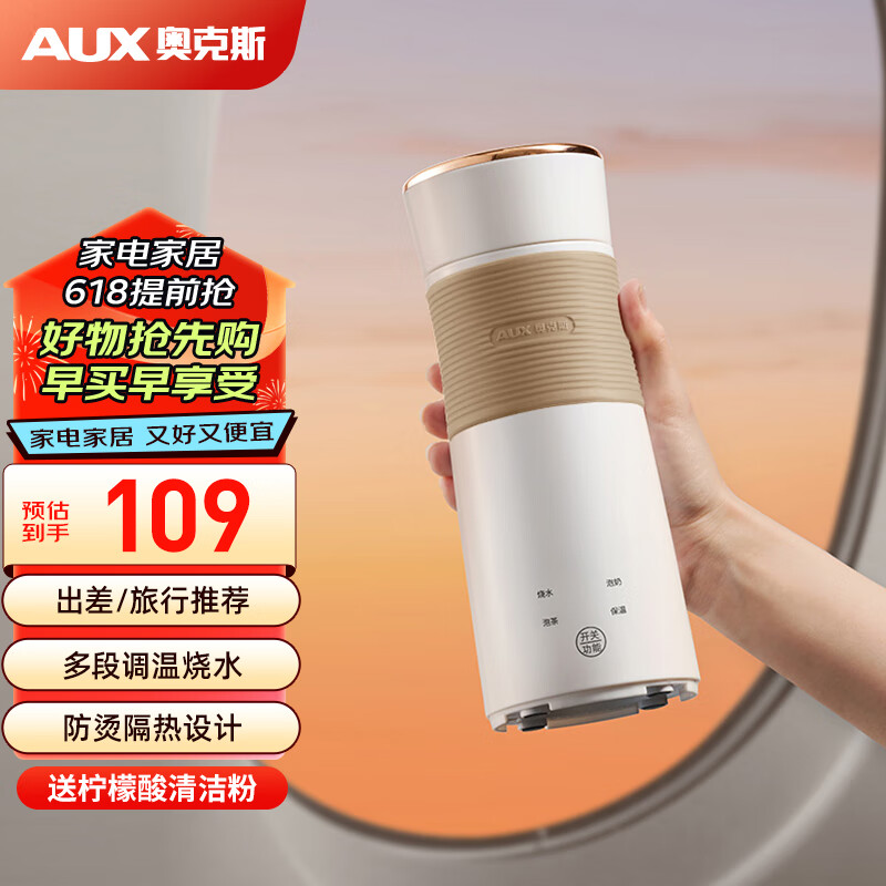 奥克斯(AUX)便携式家用旅行电热水壶随行冲奶泡茶办公室养生杯恒温热水壶电水杯HX-DR21价格:54.00元!