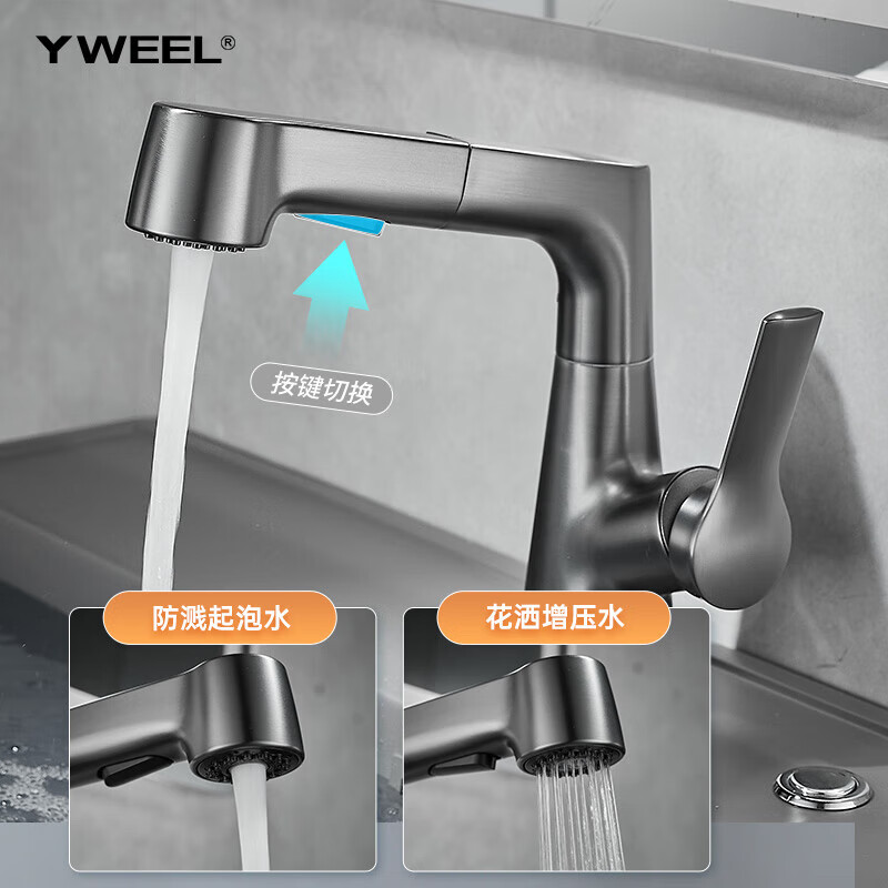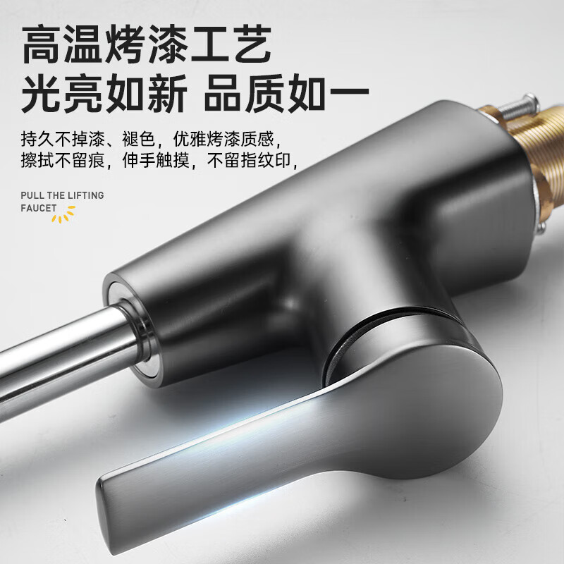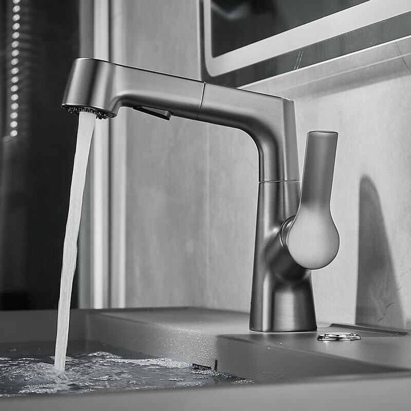 一卫 水龙头洗手盆可抽拉式冷热升降万向面盆洗手池台上盆龙头枪灰色价格:135.00元!