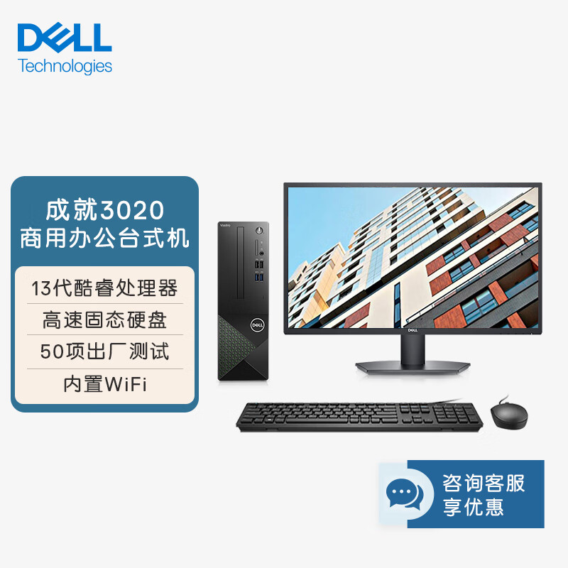 戴尔(Dell)成就3020 台式电脑主机(酷睿13代i5-13400 8G 256GSSD)27英寸大屏显示器 高性能CPU价格:3799.00元!