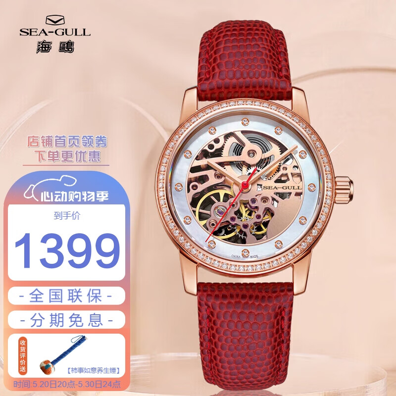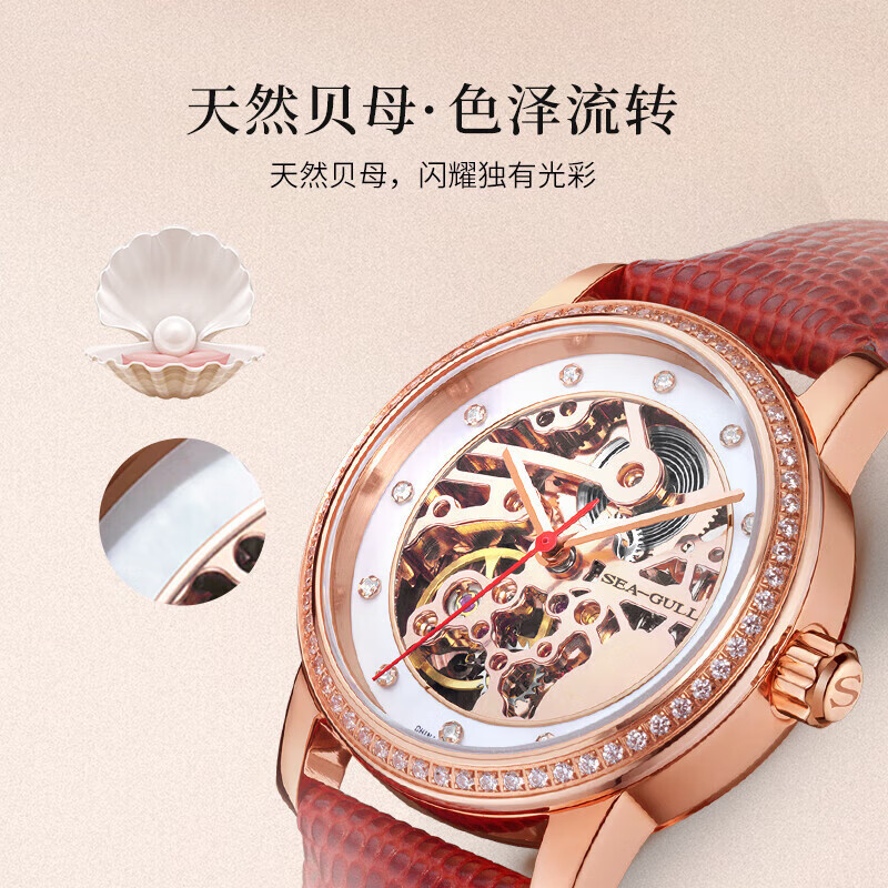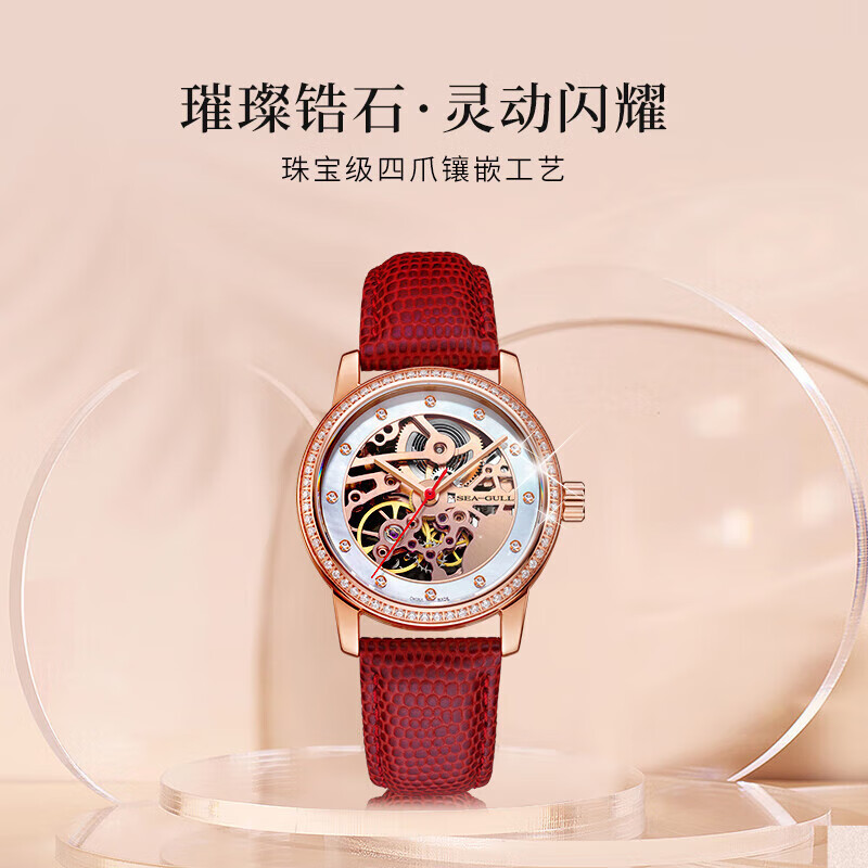 海鸥(SEAGULL)手表女士自动机械表 女表礼物荆棘玫瑰镂空腕表 319.15.6120KL价格:1649.00元!