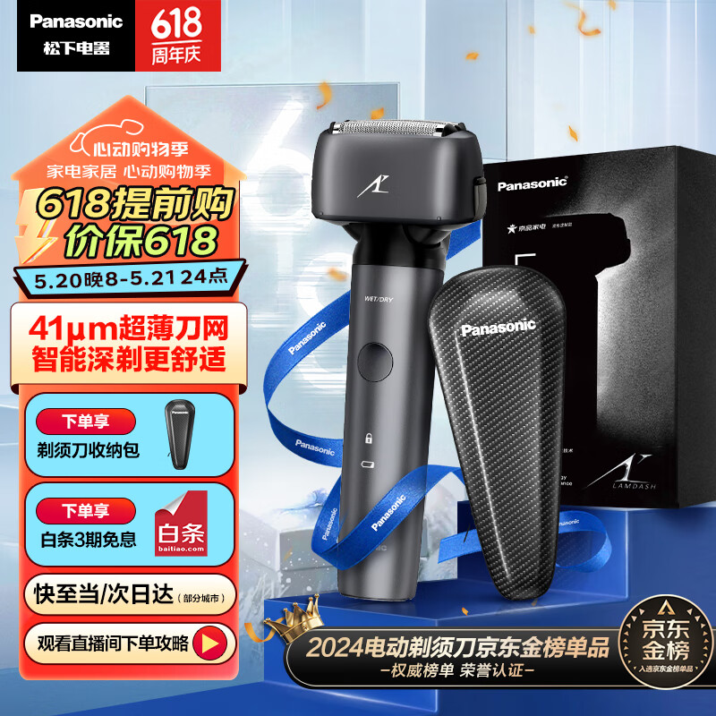 松下(Panasonic)小锤子2.0剃须刀刮胡刀电动往复式磁悬浮马达进口三刀头生日礼物男士520情人节送男友老公JLM3C黑价格:499.00元!