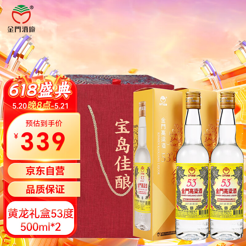 金门高粱 黄金龙 清香型 白酒 53度 500ml*2瓶 礼盒装 【宴请送礼】价格:399.00元!